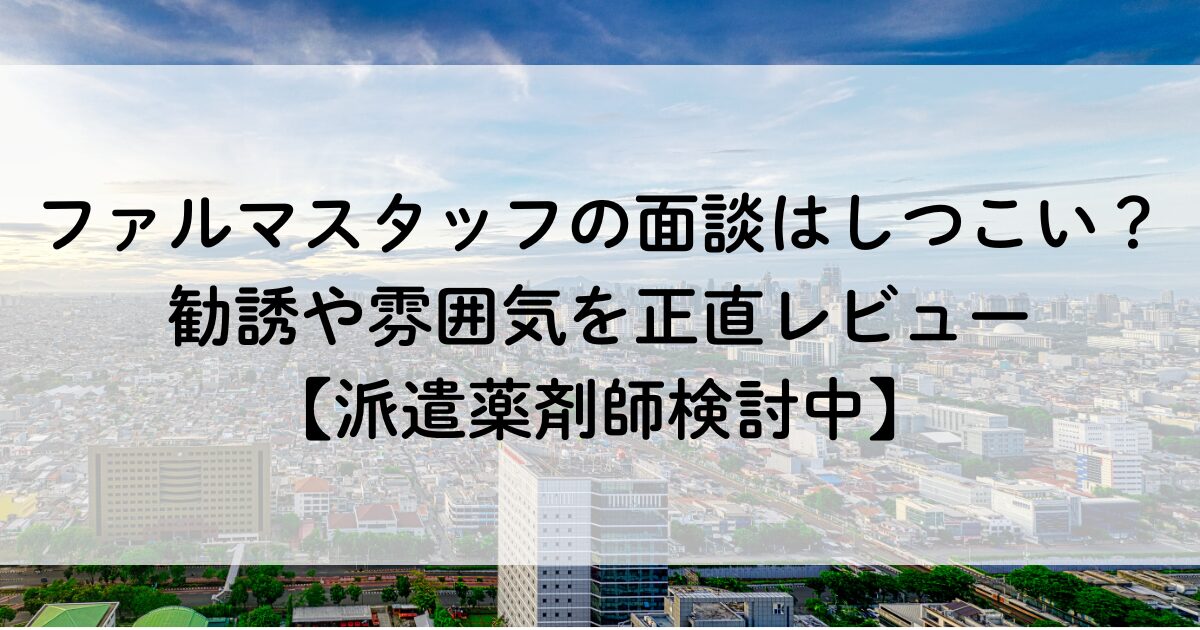 今回はその中で、ファルマスタッフ(株式会社メディカルリソース)の方と対面で面談することになったので、そのときことを記事にしました。