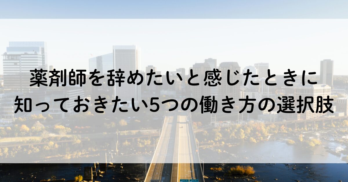 この記事では、「薬剤師を辞めたい」と感じたときに考えられる現実的で無理のない5つの働き方の選択肢を、私自身の経験を交えながら紹介します。